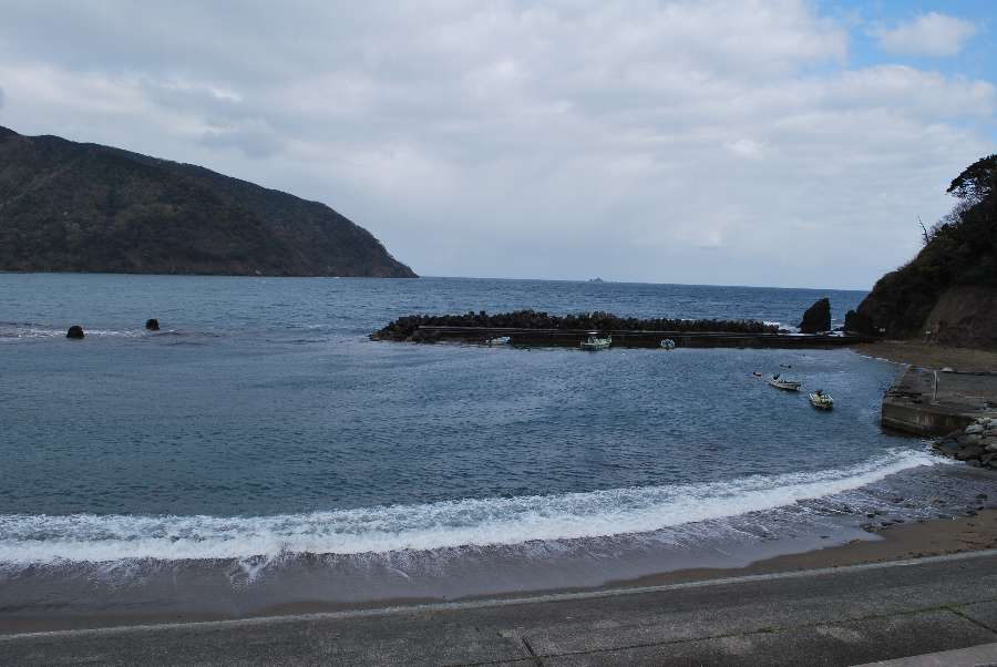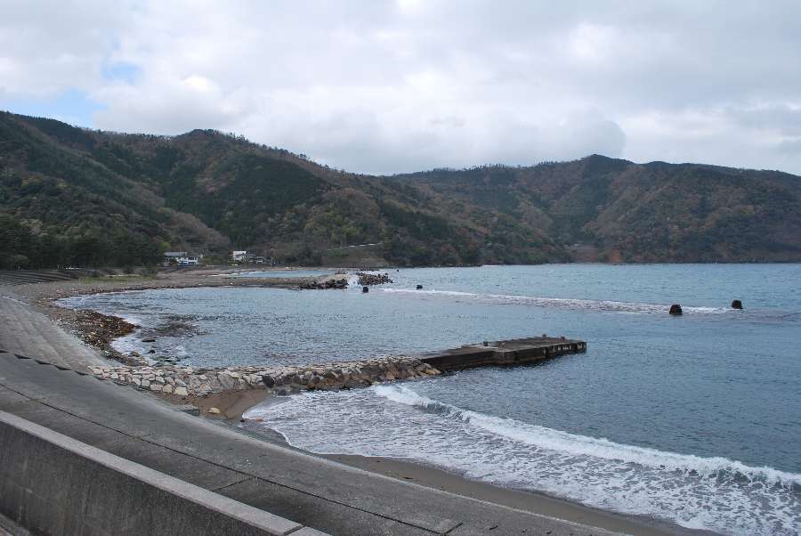 2020年4月14日9時現在は、曇りで強い北の風が吹いています。 食見海岸は約2.5mの波があり、防波堤に波が被ります 海水の透明度は低く、波の影響で濁り海中の様子が見えません。