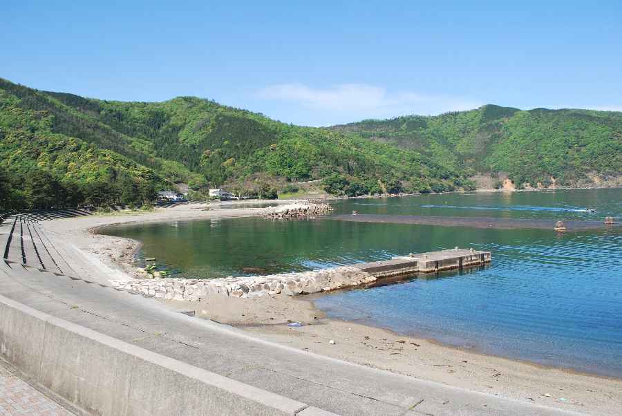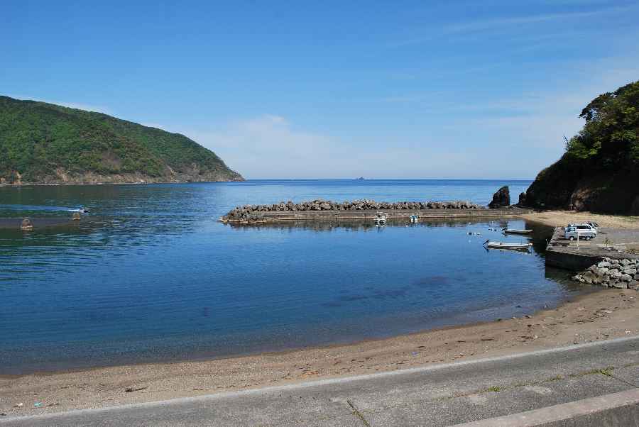 2020年5月8日9時現在は、晴れで東寄りの風が少し吹いています。食見海岸は0.5m程度の波があり穏やかな状態です。また干潮の影響で潜堤の頭が露出しています。海水の透明度は非常に高く、海底まではっきりと見ることができます。