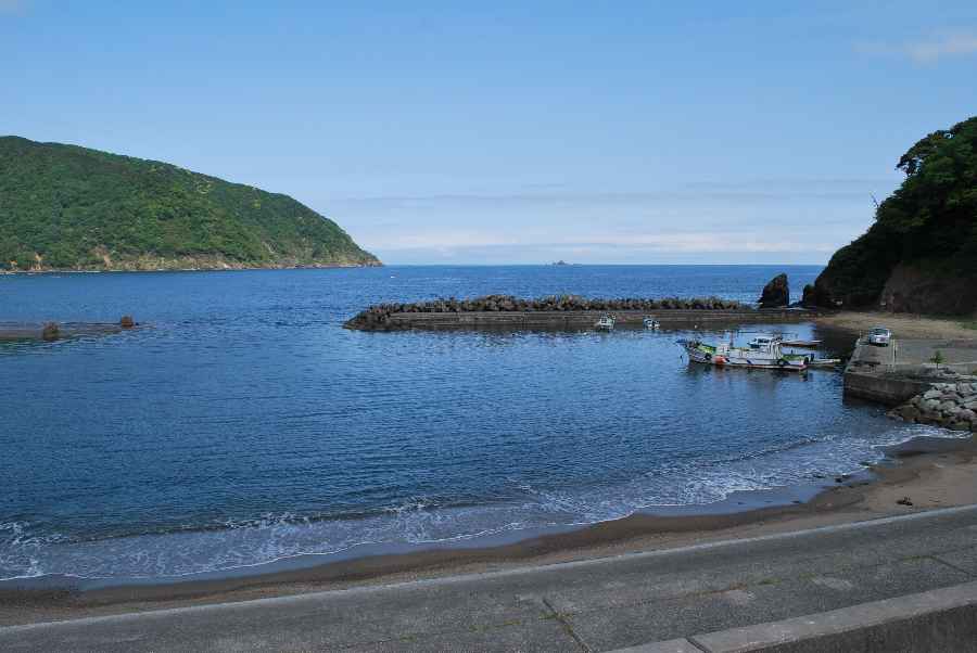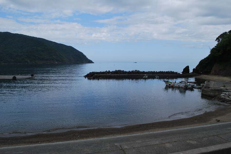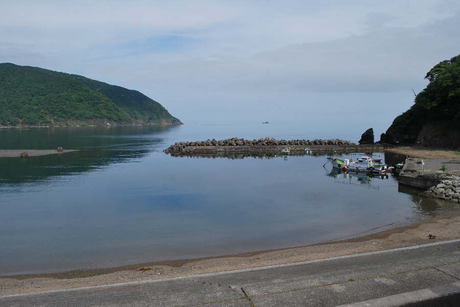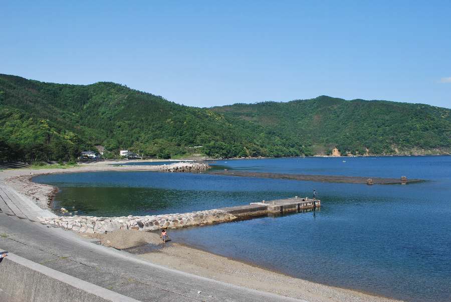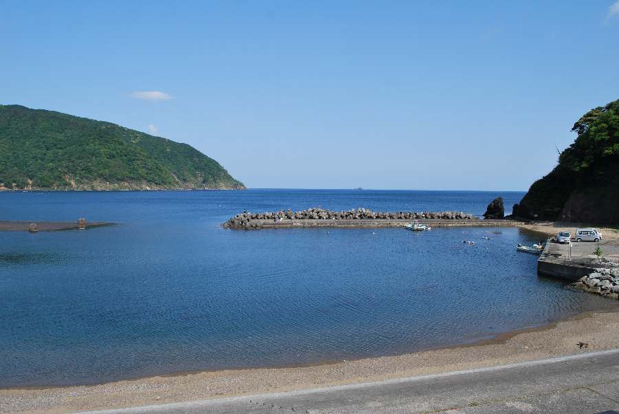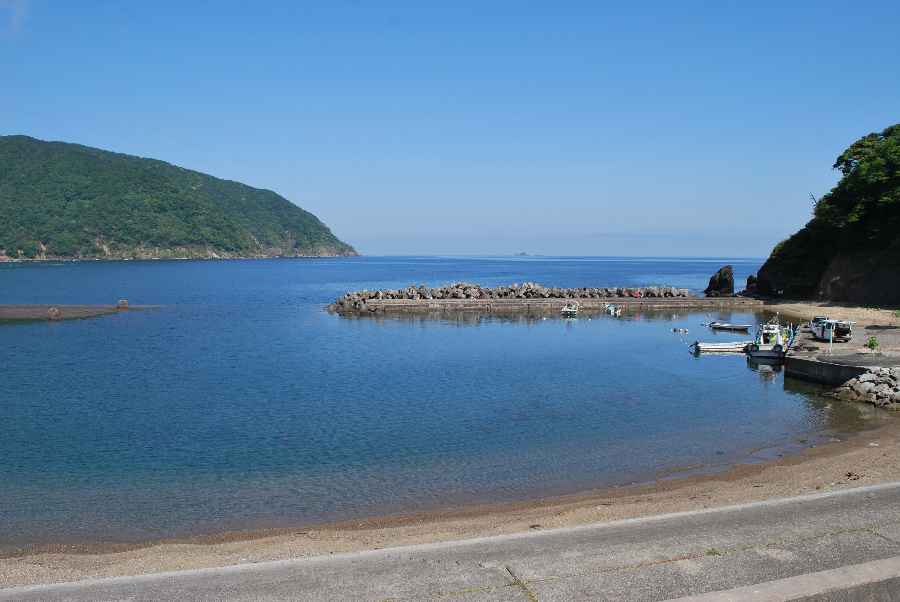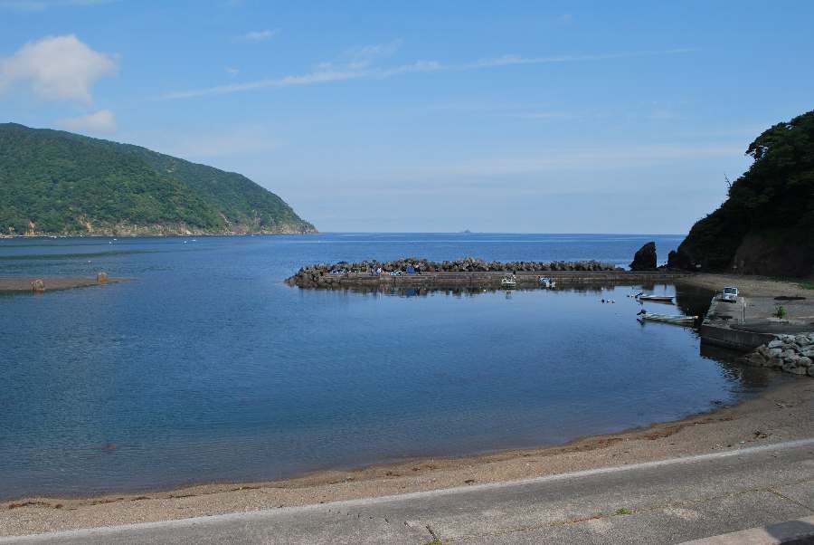 食見海岸は風によりさざ波がありますが、穏やかな海況です。