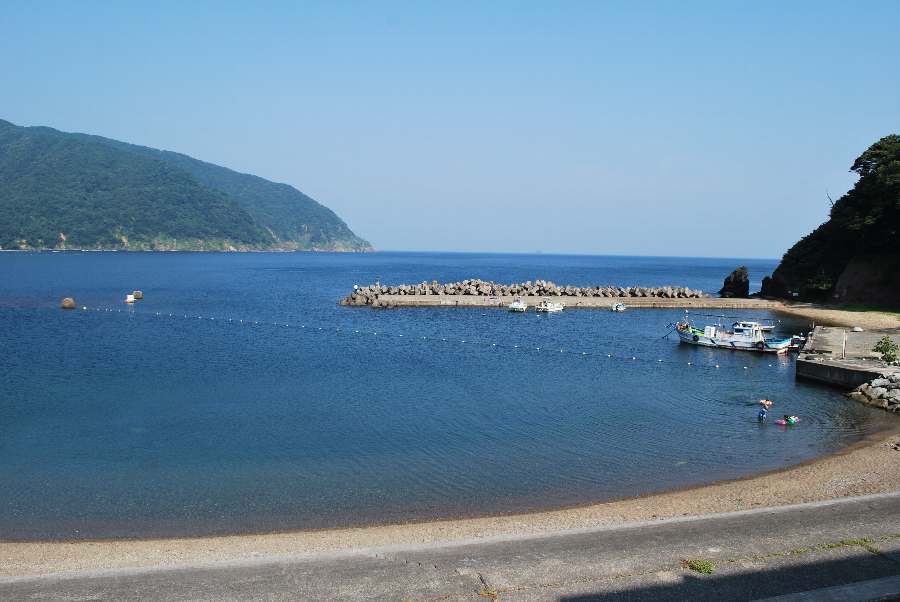 食見海岸は、波も無く穏やかな海況です。