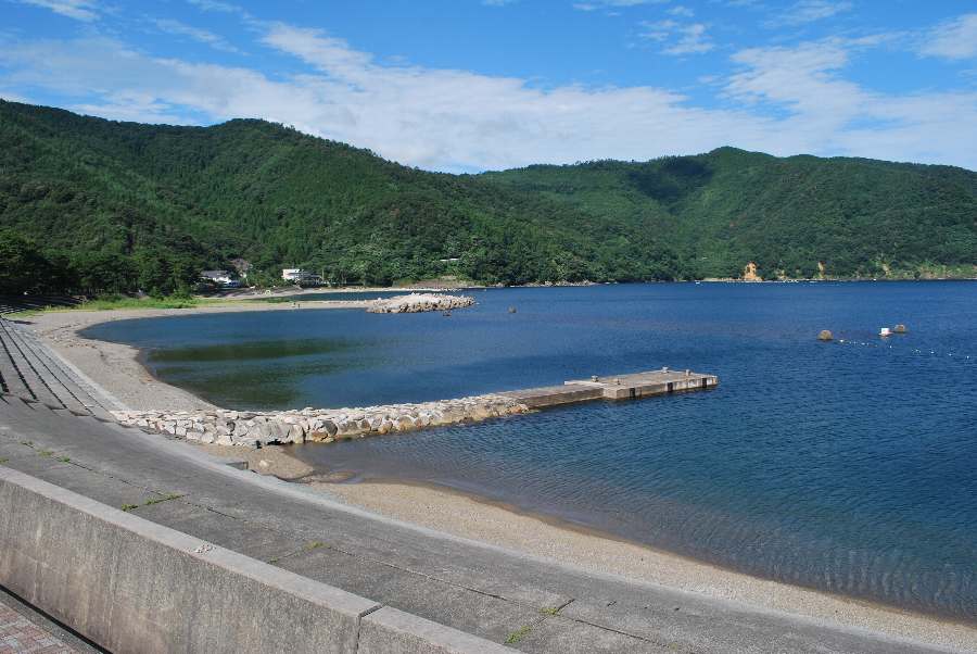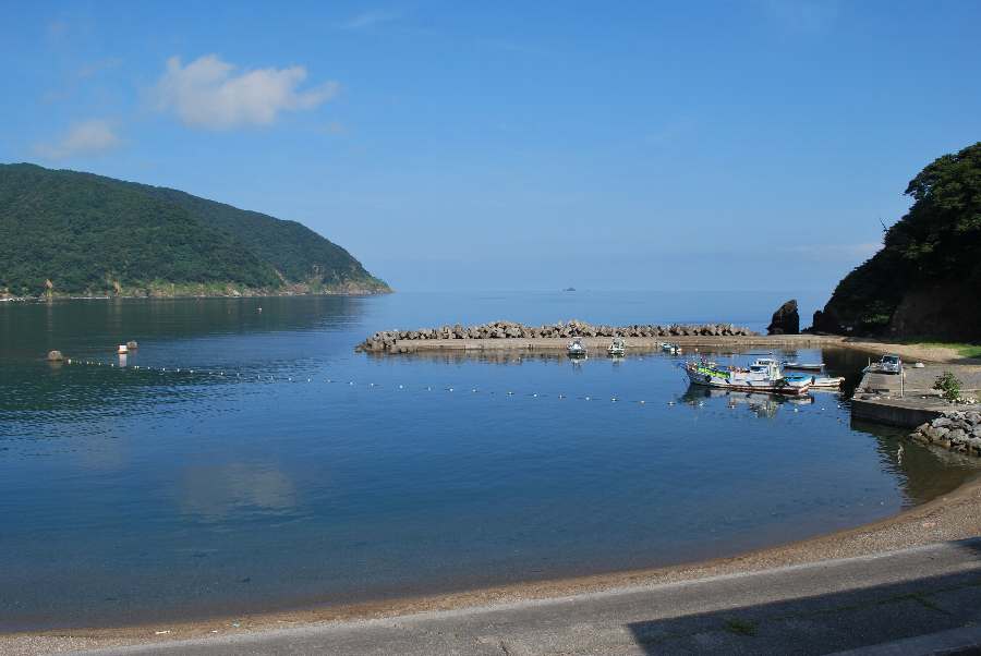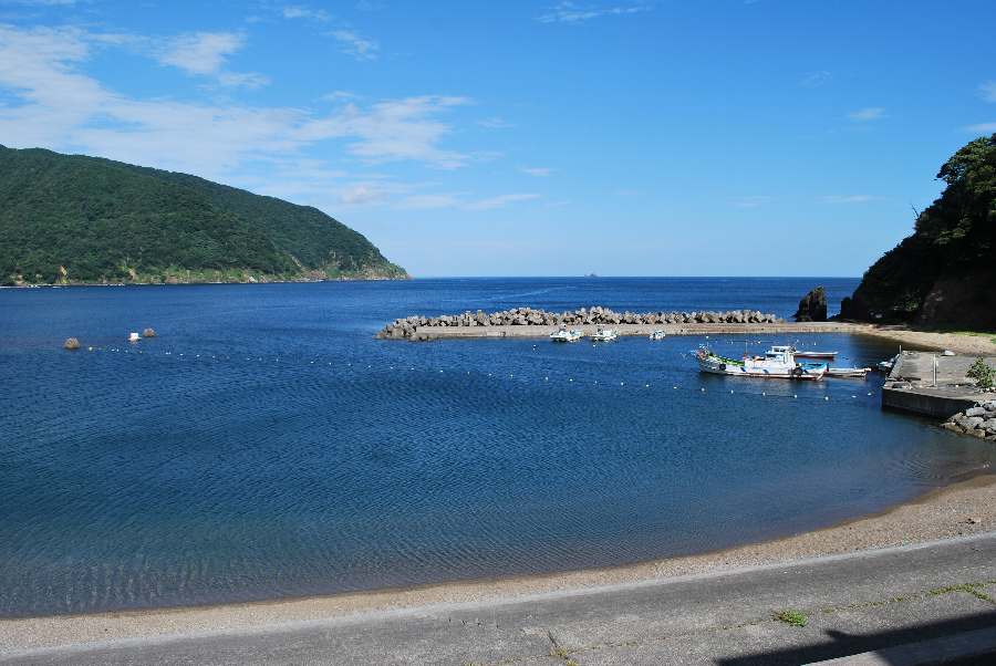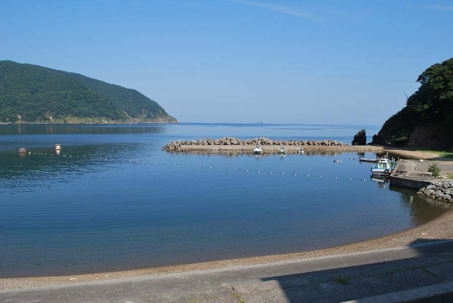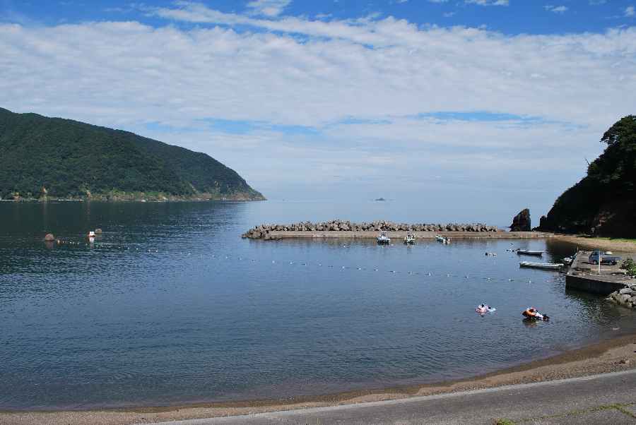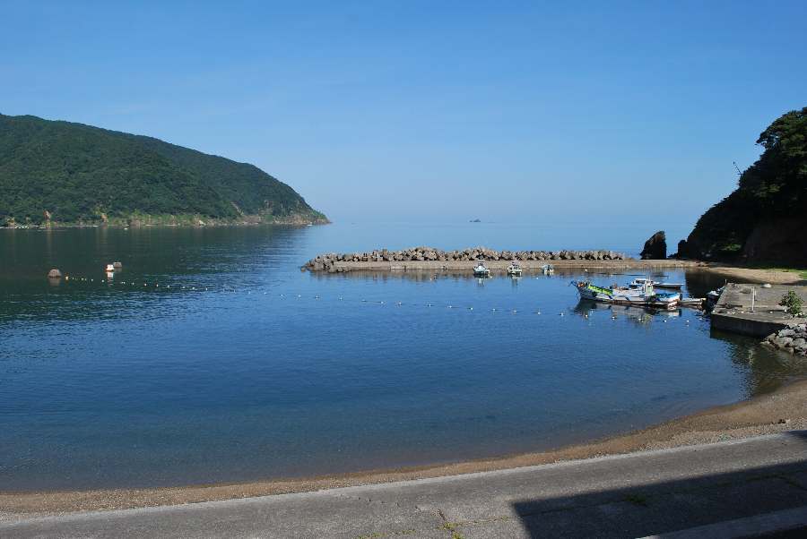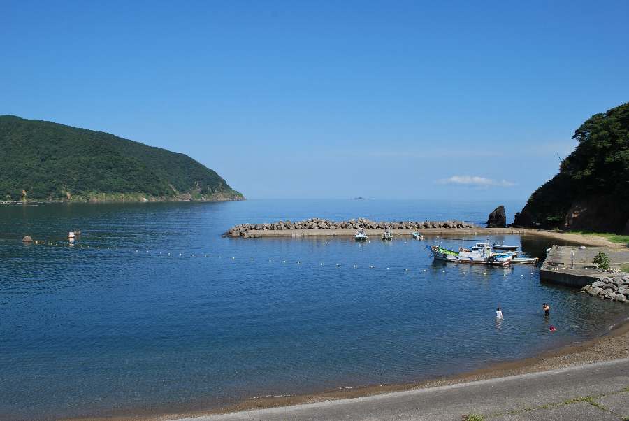 食見海岸は、風によるさざ波がありますが穏やかな海況です。
