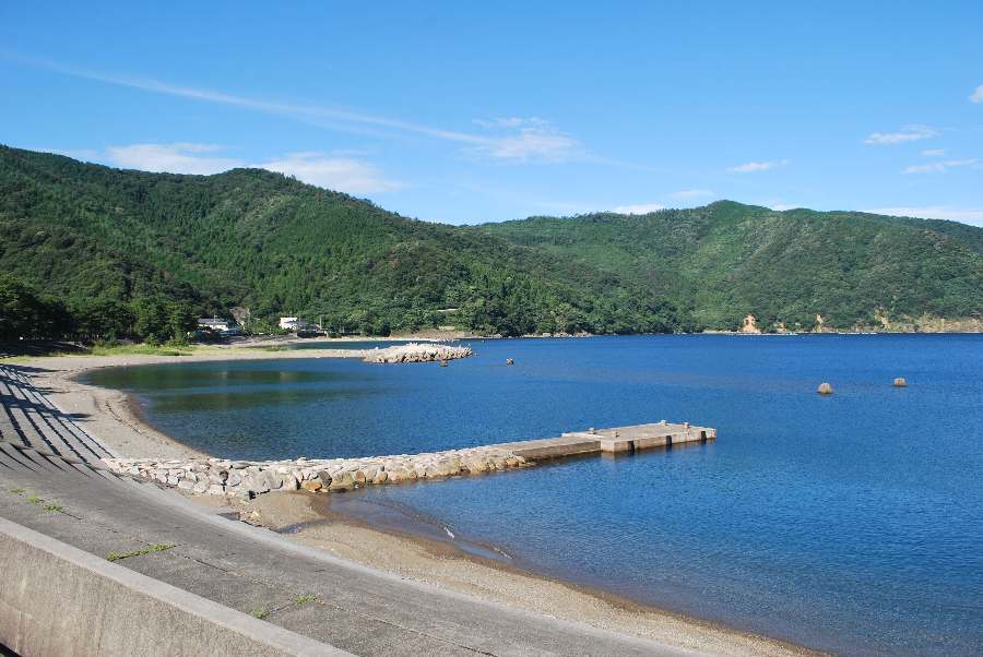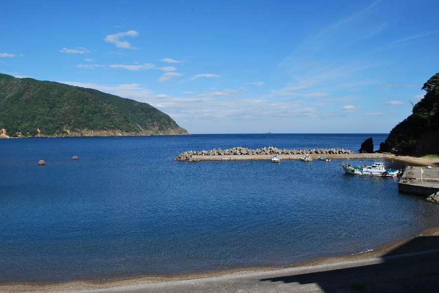 食見海岸は、風によるさざ波がありますが、大きな波も無く穏やかな海況です。