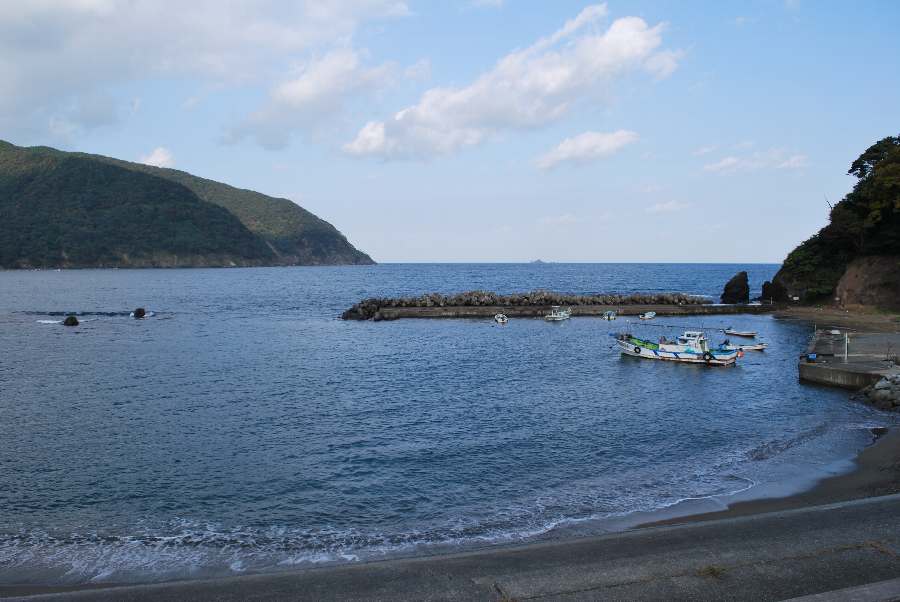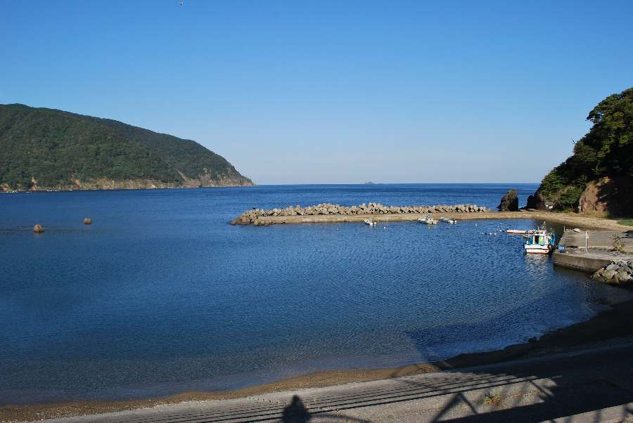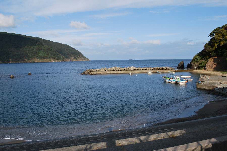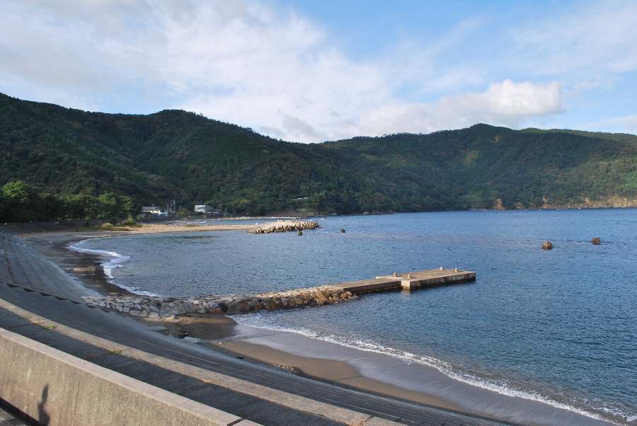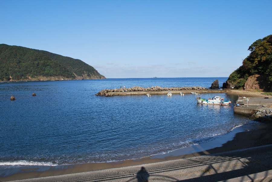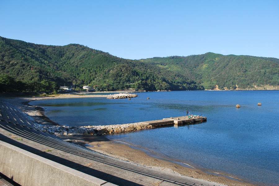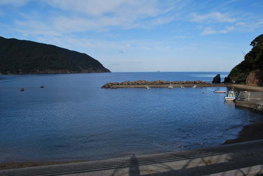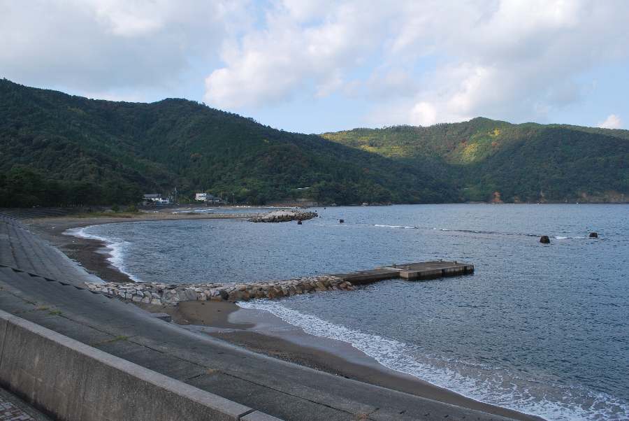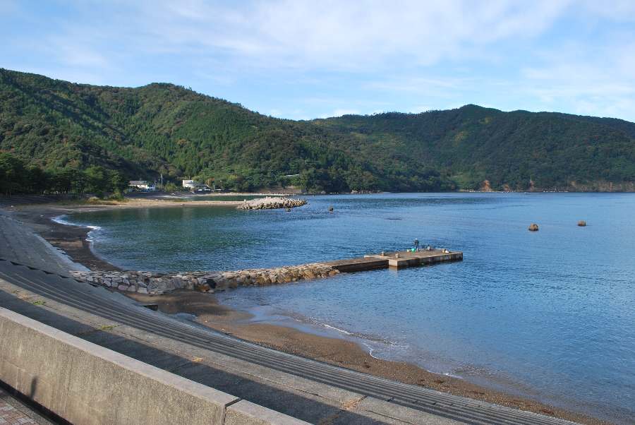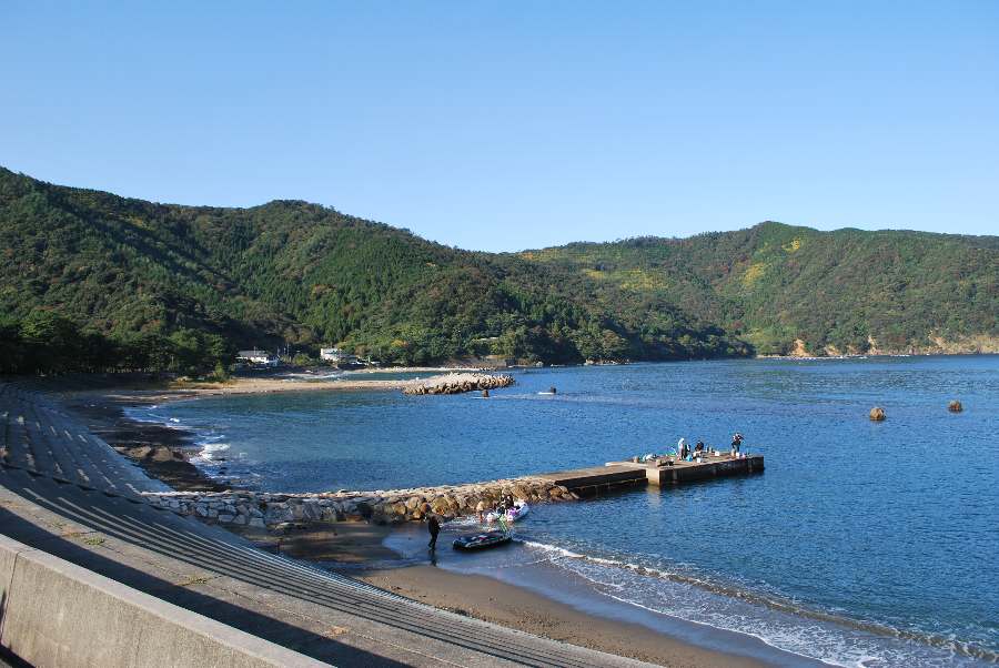 2020年10月27日9時現在は、晴れで北の風があります。 食見海岸は、波も無く穏やかな海況です。 海水の透明度も高く、海底の岩も見えます。