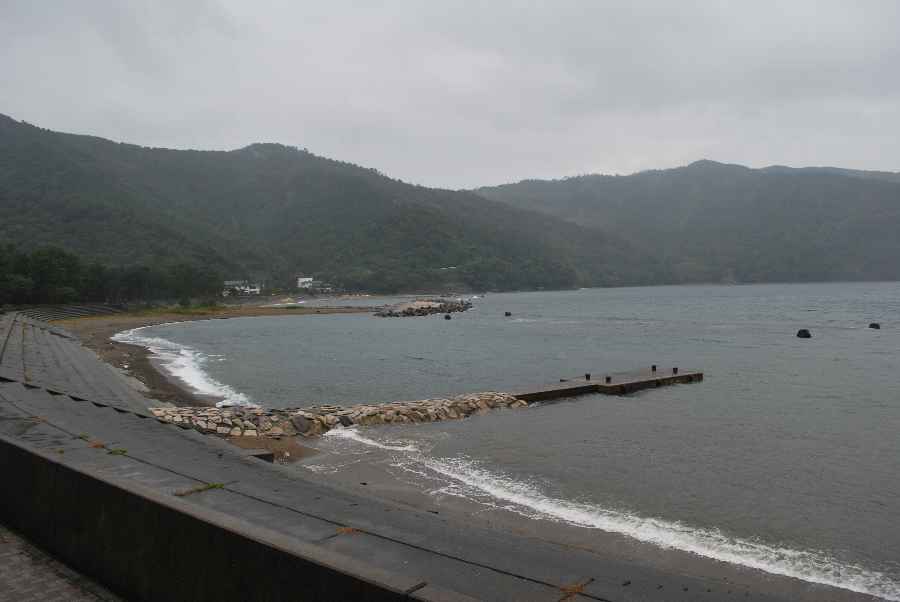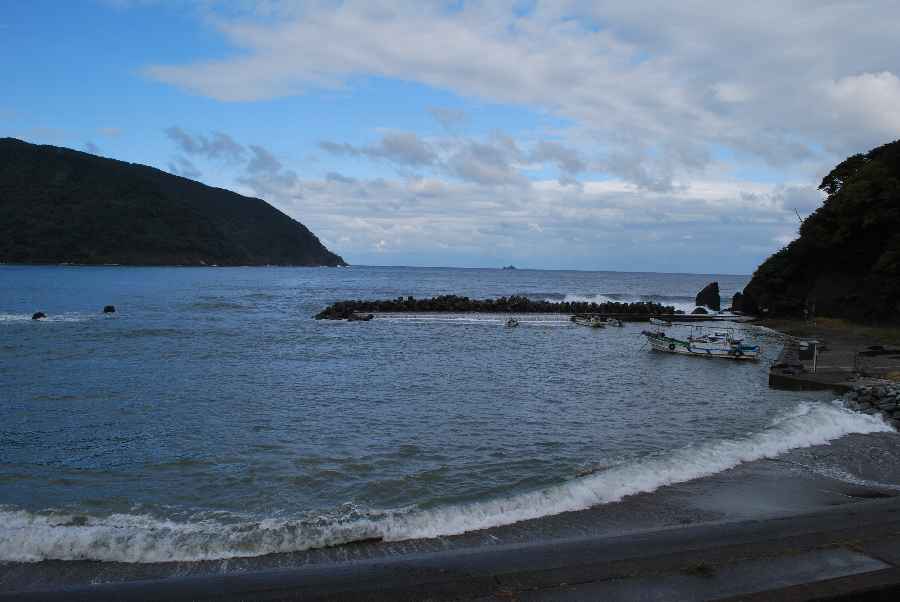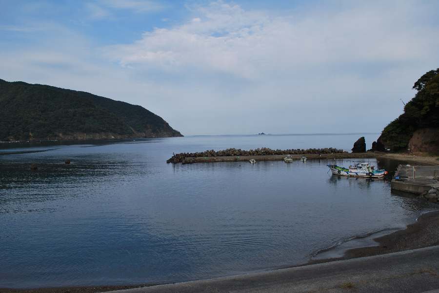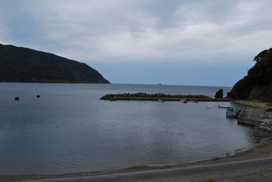 2020年10月28日9時現在は、曇りで弱い南の風があります。 食見海岸は、波も無く穏やかな海況です。 海水の透明度も高く、海底の岩も見えます。