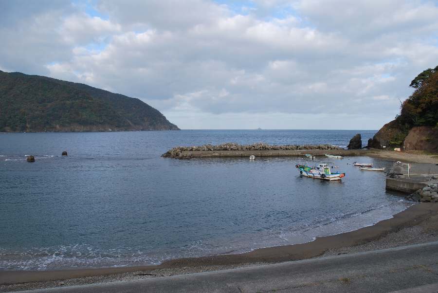 食見海岸は、約1.4mの波があり、時々防波堤の根元に波が被ります。