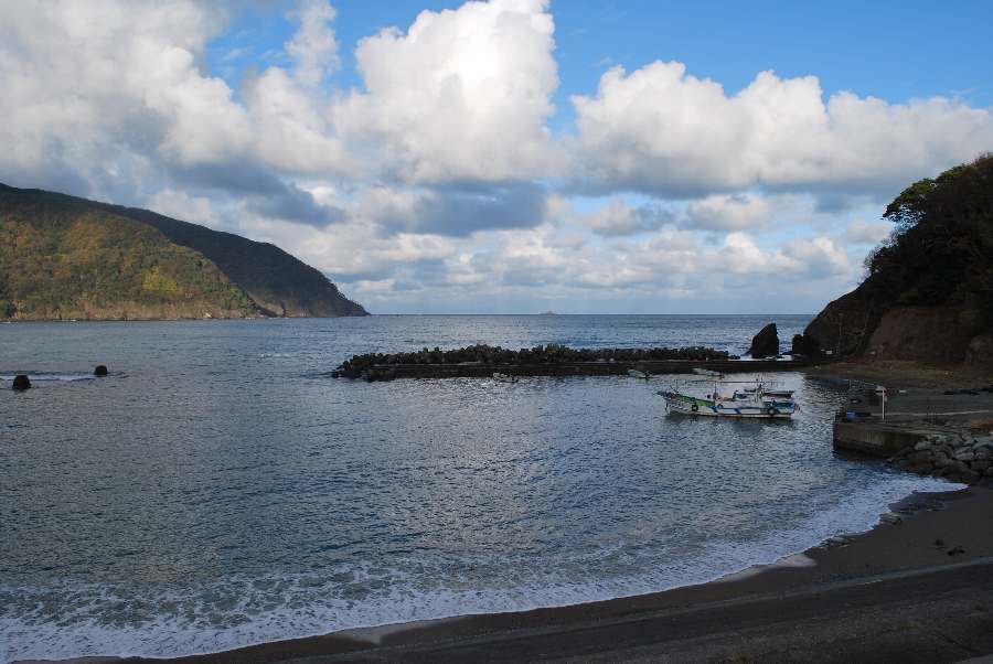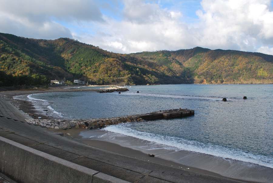 2020年12月4日9時現在は、曇りで弱い北の風があります。 食見海岸は、約1.5mの波があり時々防波堤に波が被ります。 海水の透明度は低く、海底の岩が見えるようになっています。