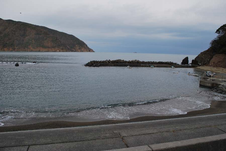 2021年1月5日9時現在は、曇りで弱い南西の風があります。 食見海岸は、約1mの波があり穏やかな海況です。 海水の透明度は若干高く、薄く濁っていますが海底の岩が見えます。