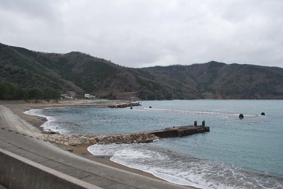 2021年3月7日9時現在は、曇りで北の風があります。 食見海岸は約2mの波があり、時々防波堤に波が被ります。 海水の透明度は昨日の波の影響で濁り、海中の様子が見えません。