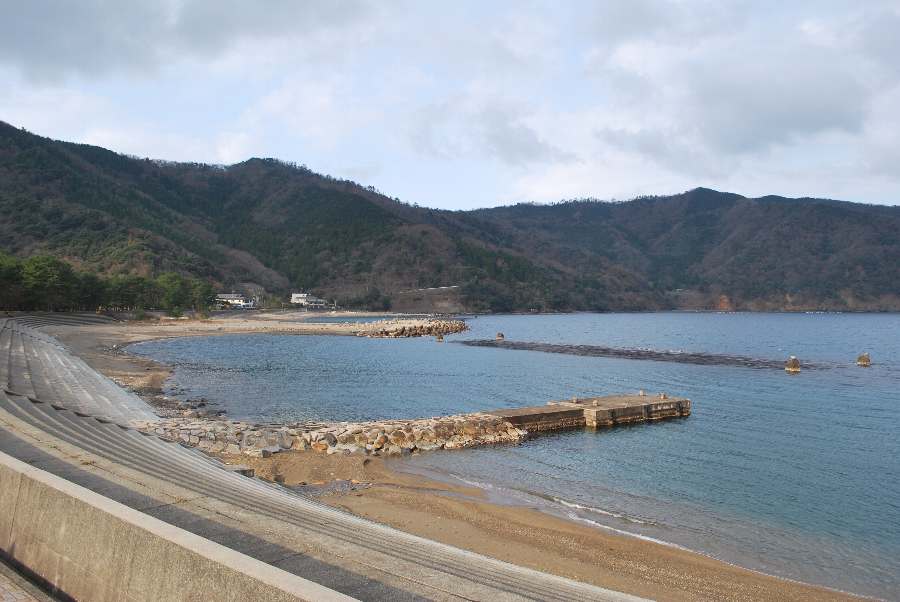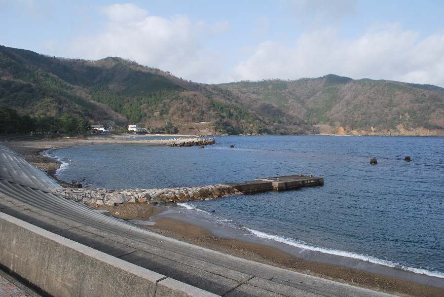 海水の透明度は風で見えにくいですが、海底の岩が見えます。