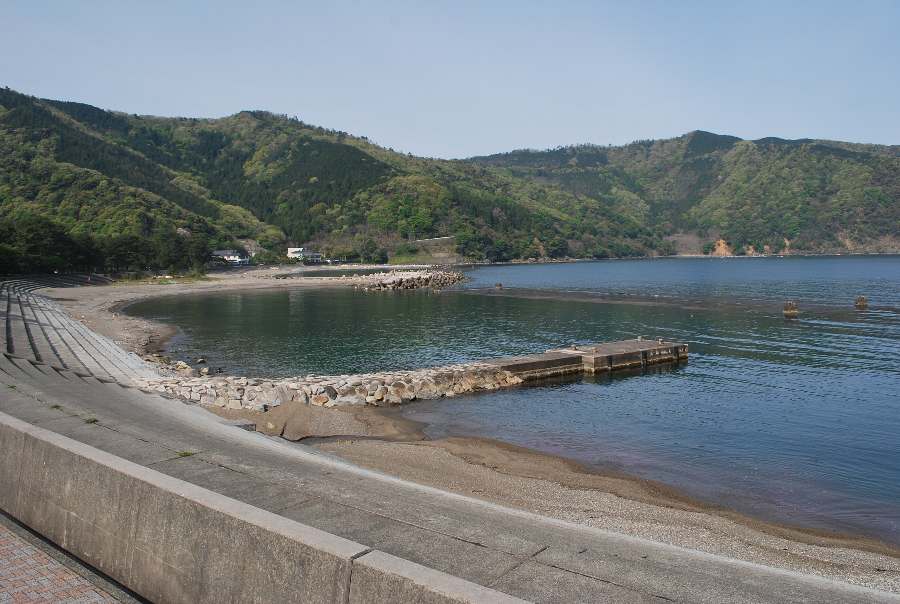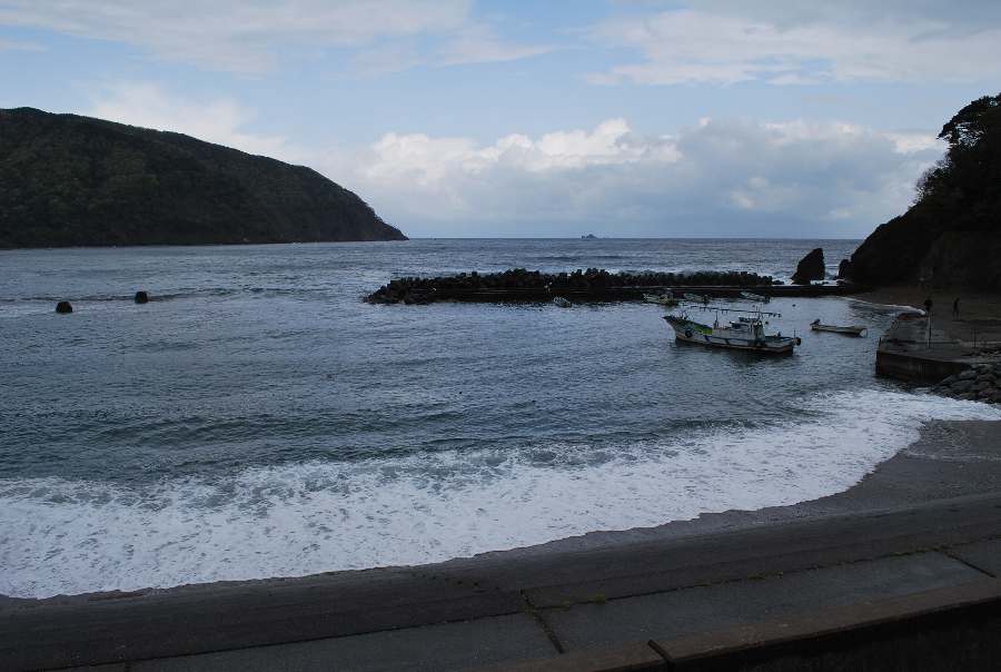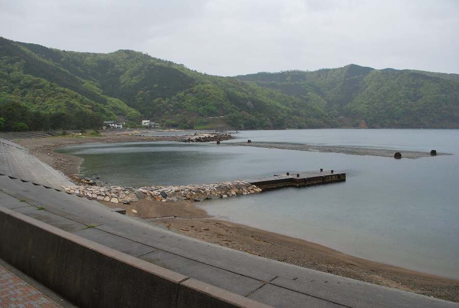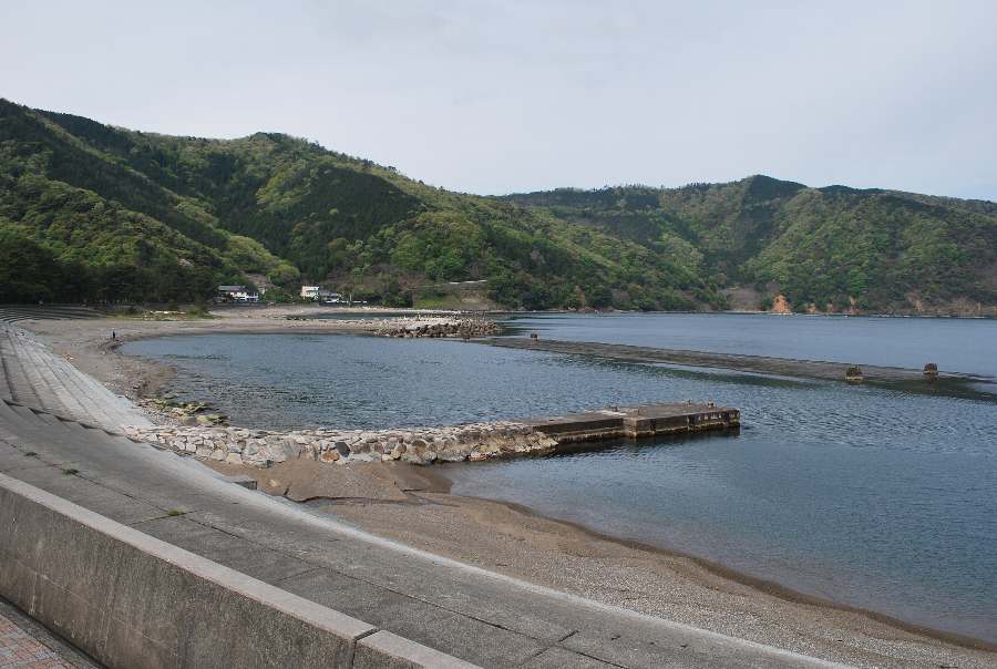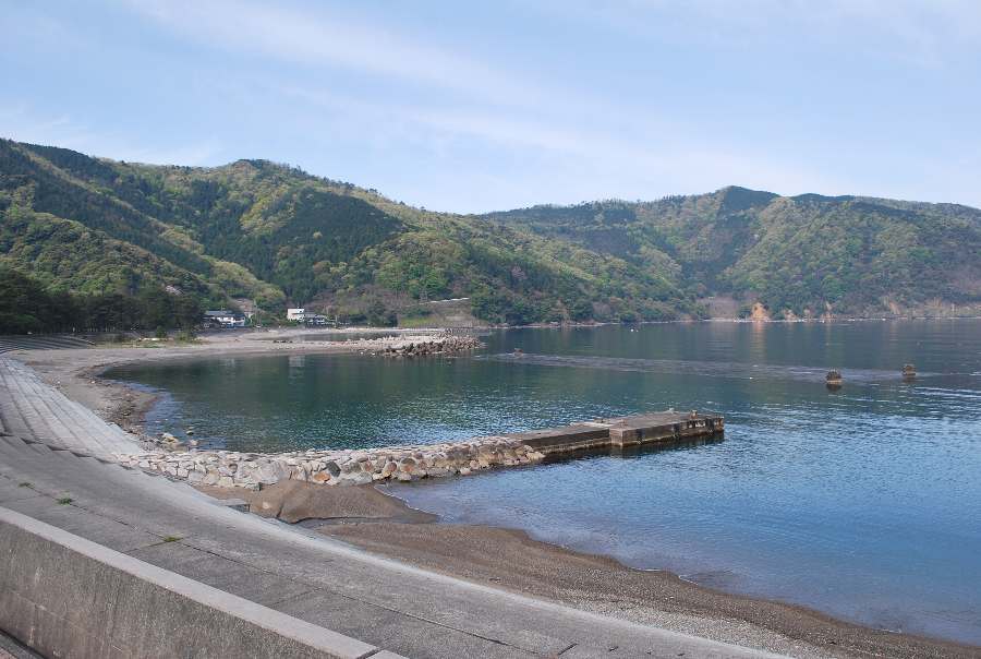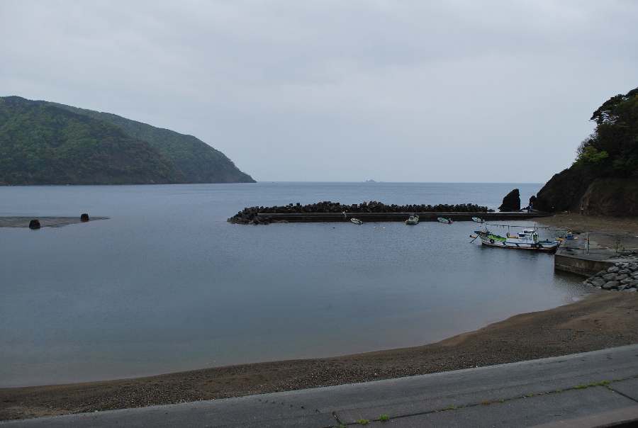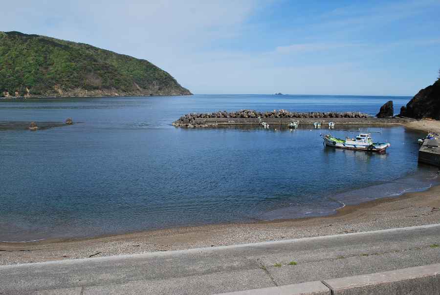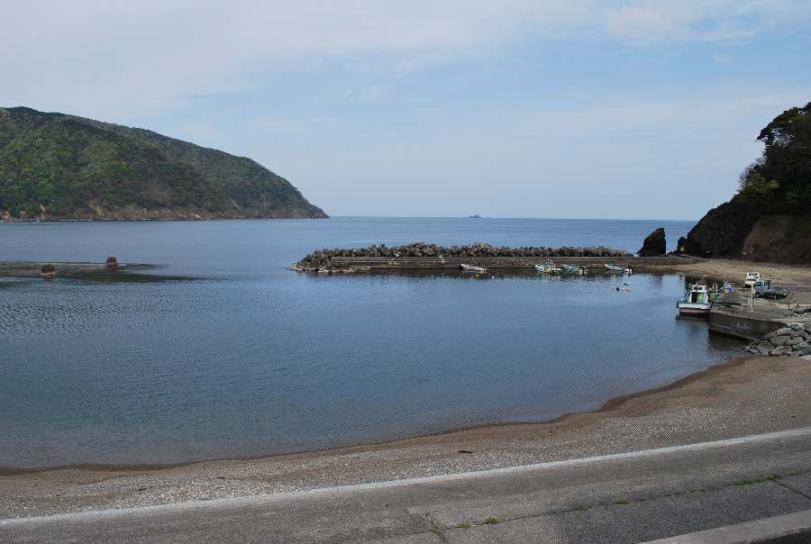 2021年4月28日9時現在は、雨で南東の風があります。 食見海岸は、波も無く穏やかな海況です。 海水の透明度は高く、海底の岩や海藻がよく見えます。