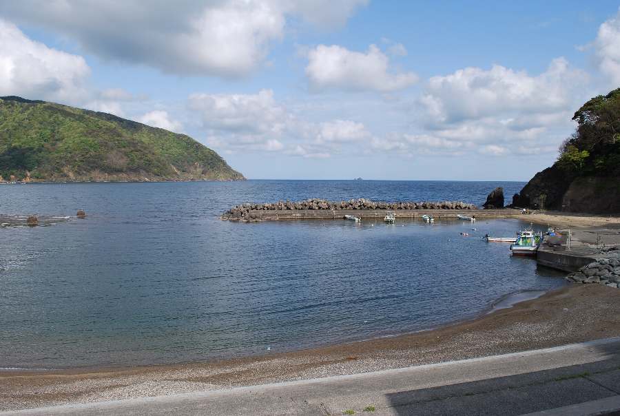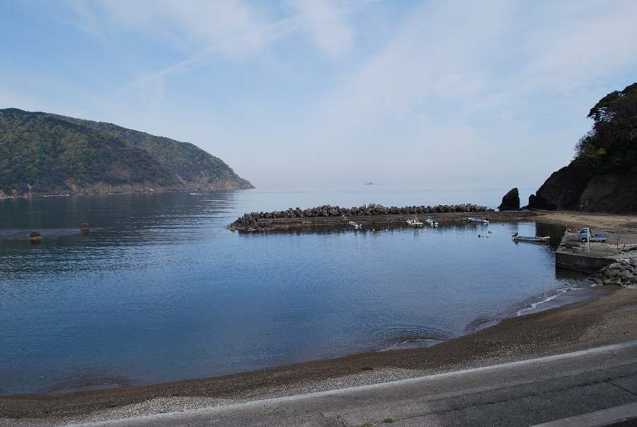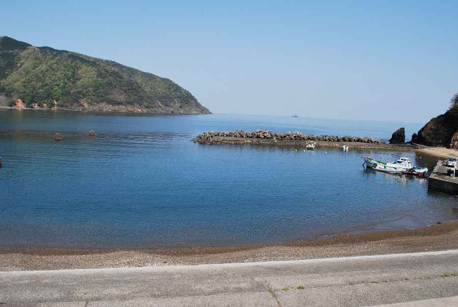 2021年4月23日9時現在は、晴れで弱い南東の風があります。 食見海岸は、波も無く穏やかな海況です。 海水の透明度は高く、海底の岩や海藻がよく見えます。