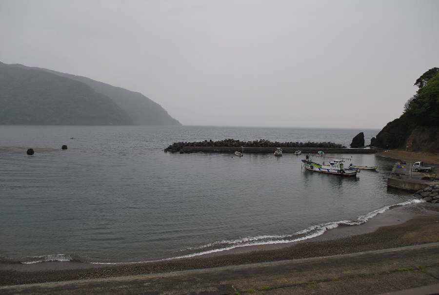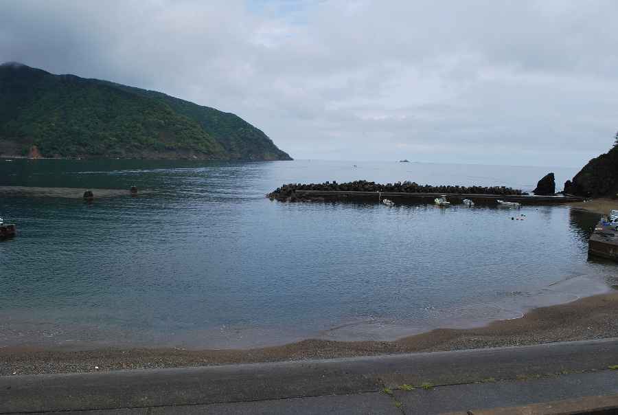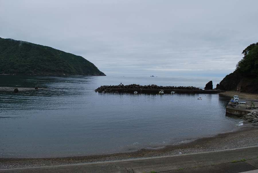 2021年5月18日午前9時現在は、曇りで弱い北西の風があります。 食見海岸は、波も無く穏やかな海況です。 海水の透明度は高く、海底の岩や海藻が見えます。