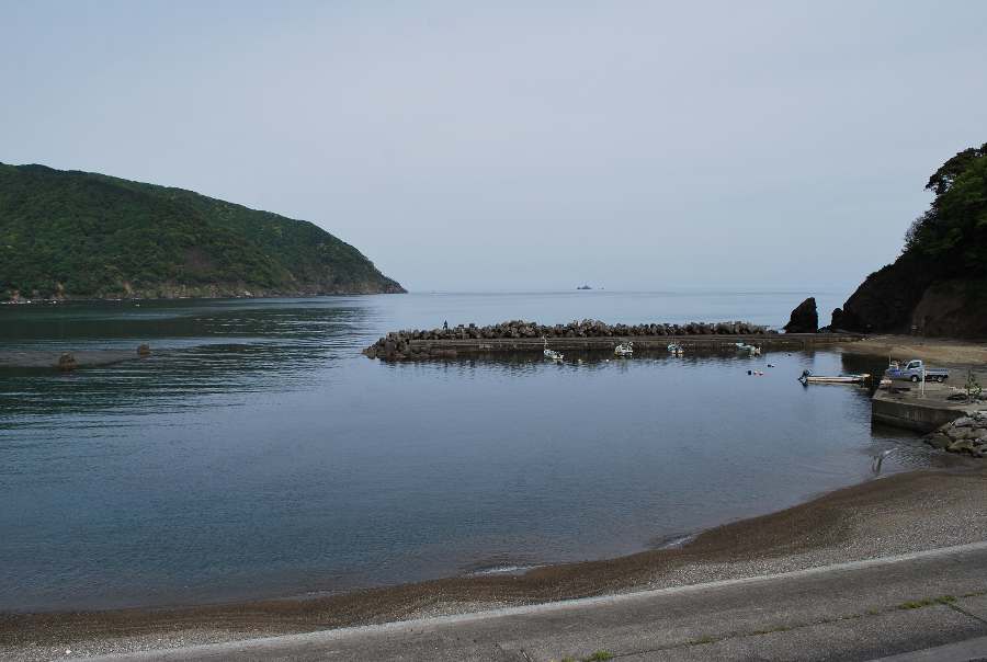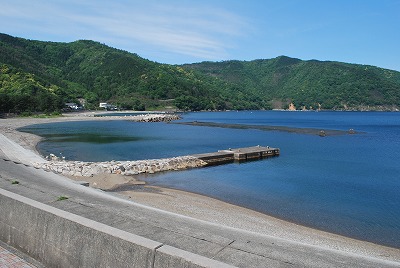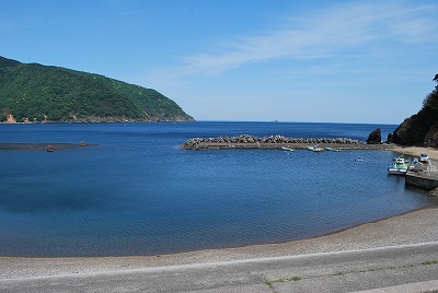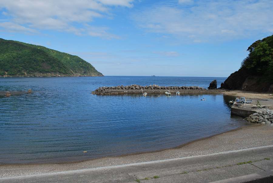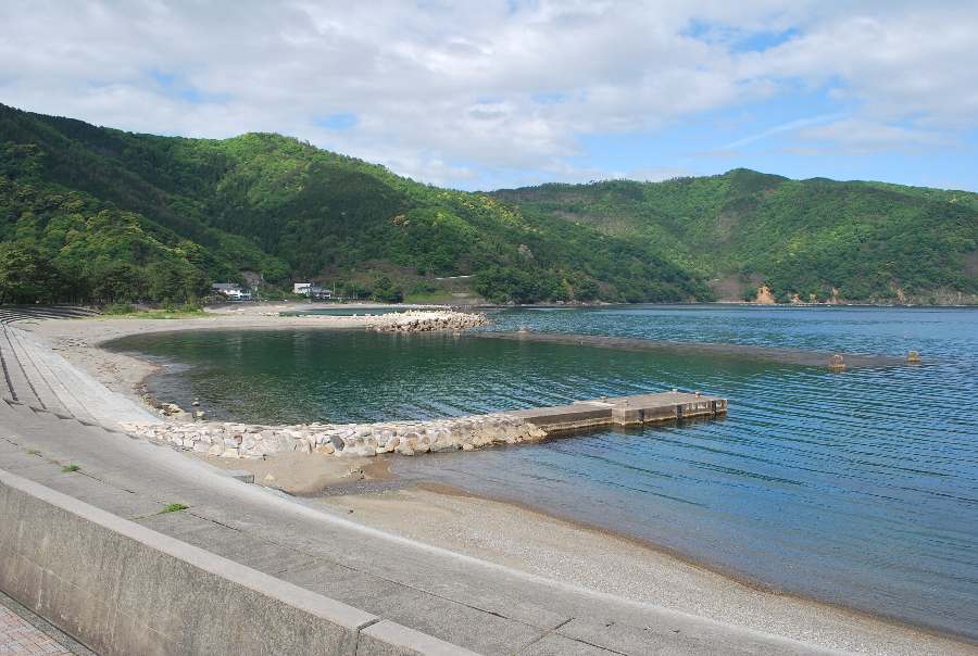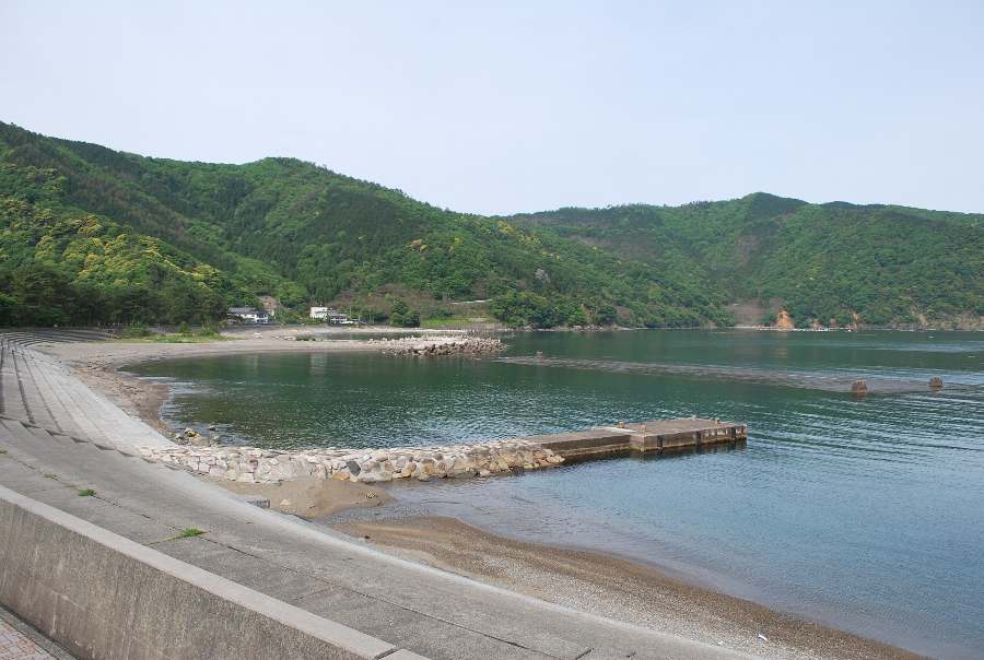 2021年5月13日午前9時現在は、晴れで弱い東の風があります。 食見海岸は、波も無く穏やかな海況です。 海水の透明度は高く、海底の岩や海藻が見えます。