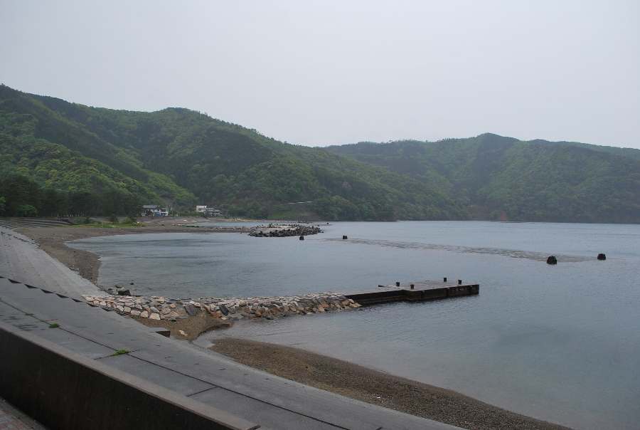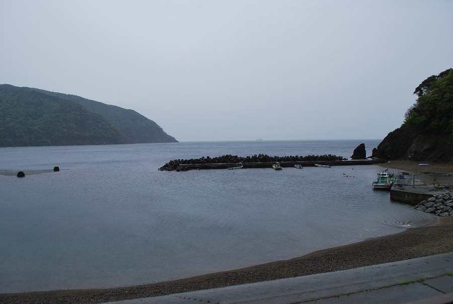 食見海岸は、風によるさざ波はありますが海岸に大きな波はありません。