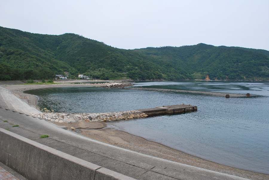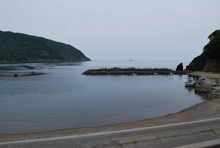 2021年6月2日午前9時現在は、曇りで弱い南東の風があります。 食見海岸は、波も無く穏やかな海況です。 海水の透明度は港内が薄く緑がかってっていますが、海底の岩や海藻が見えます。