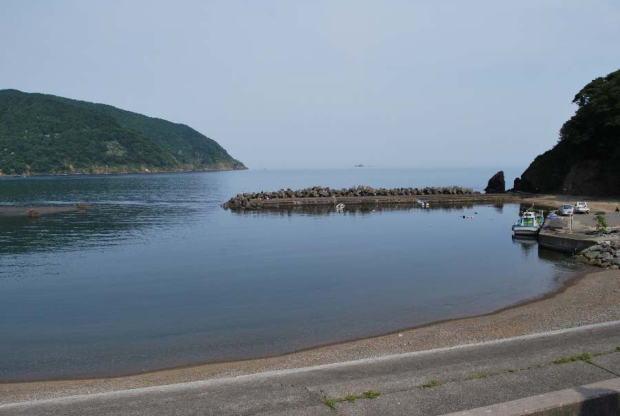 海水の透明度は港内が緑がかっていますが海底の岩や海藻が見えます。
