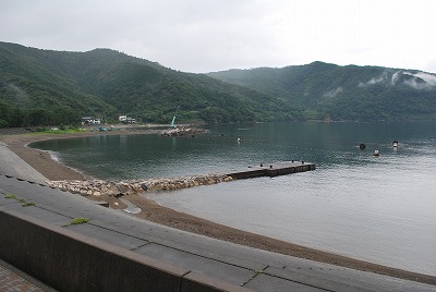 海水の透明度はやや低く、雨の影響で少し濁っていて、海底の岩や海藻は、はっきりとは見えません。