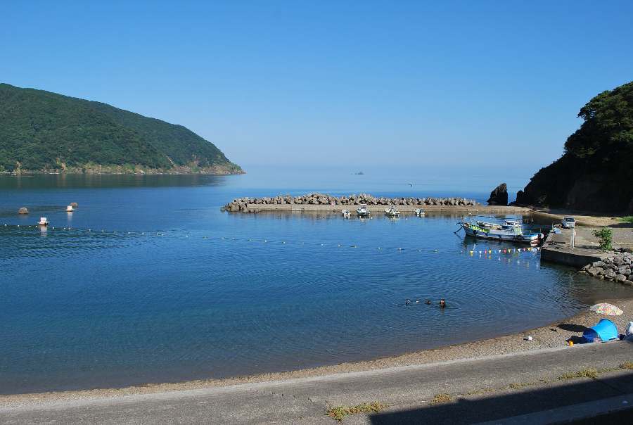 2021年8月5日午前9時現在は、晴れで弱い北西の風があります。 食見海岸は、波もなく穏やかな海況です。 海水の透明度は高く、キュウセンやメジナの子供の泳ぐ姿がよく見えます。