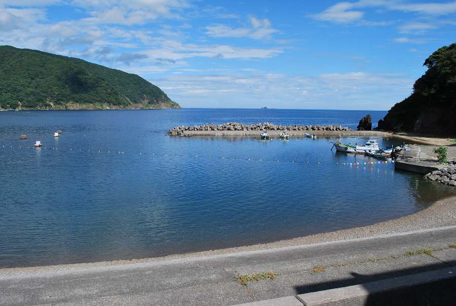 2021年8月7日午前9時現在は、晴れで弱い南東の風があります。 食見海岸は、波はほとんどなく穏やかな海況です。 海水の透明度は高く、キュウセンやメジナの若魚の泳ぐ姿がよく見えます。
