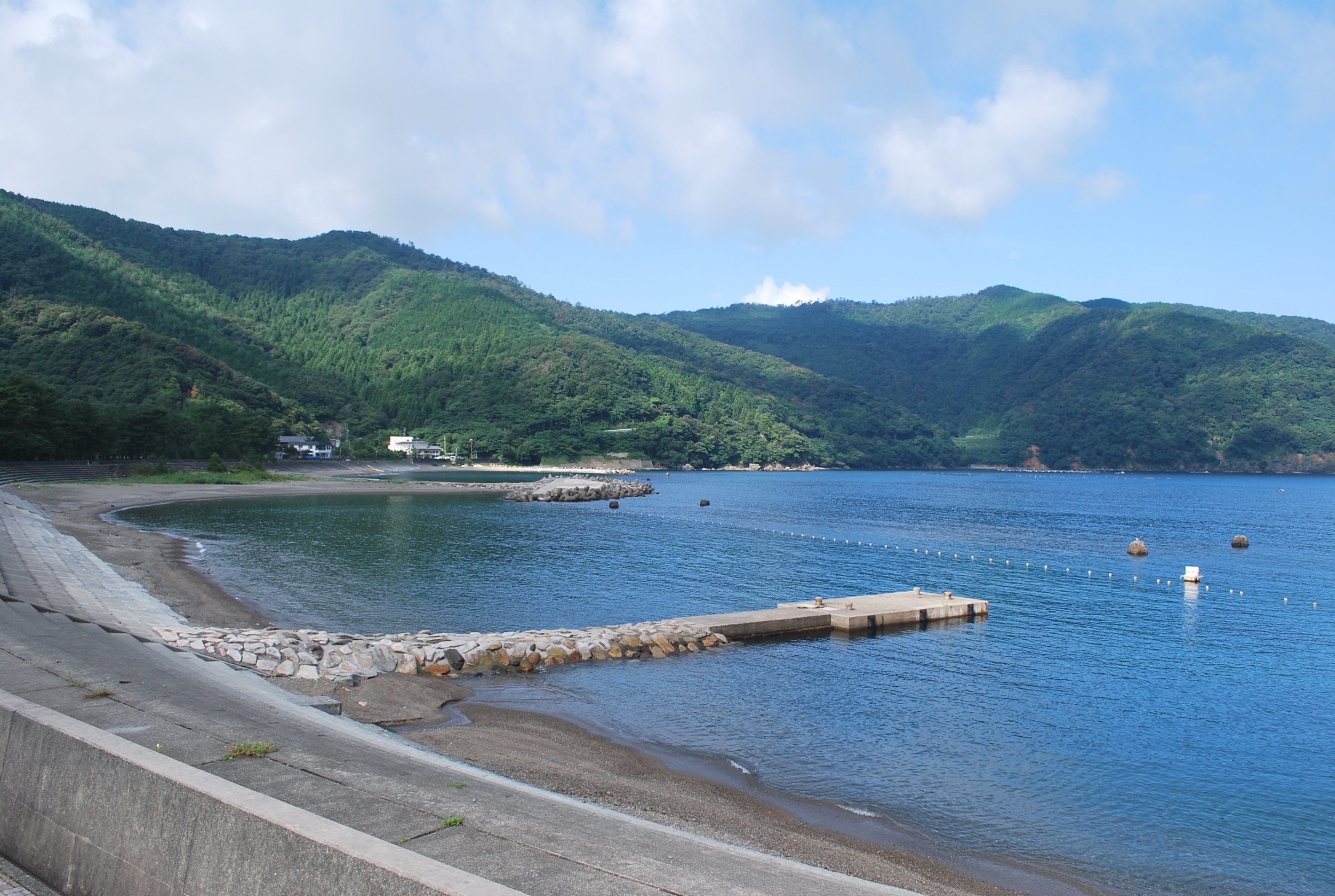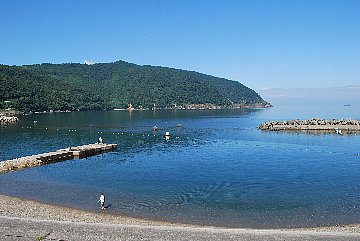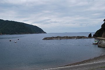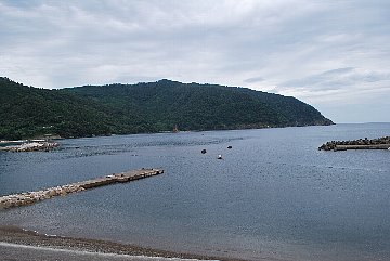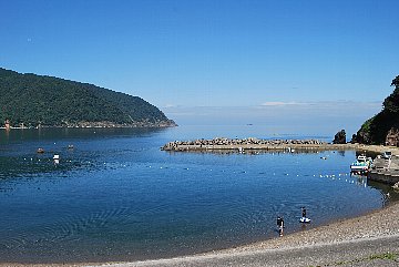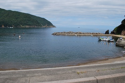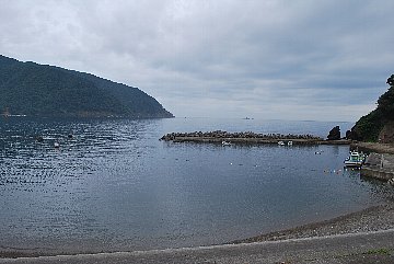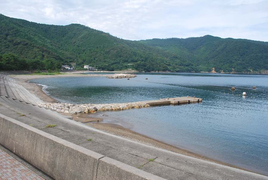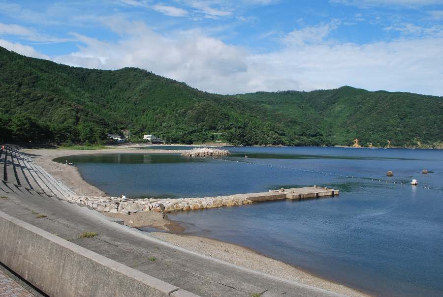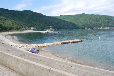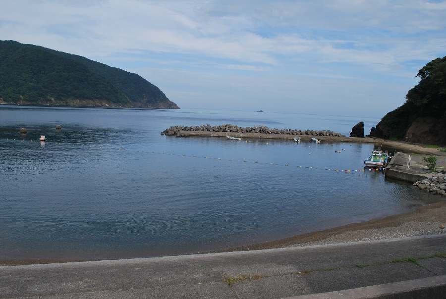2021年8月23日午前9時現在は、曇で風はありません。 食見海岸は、穏やかな海況です。 海水の透明度は高く、底まで見ることができます。