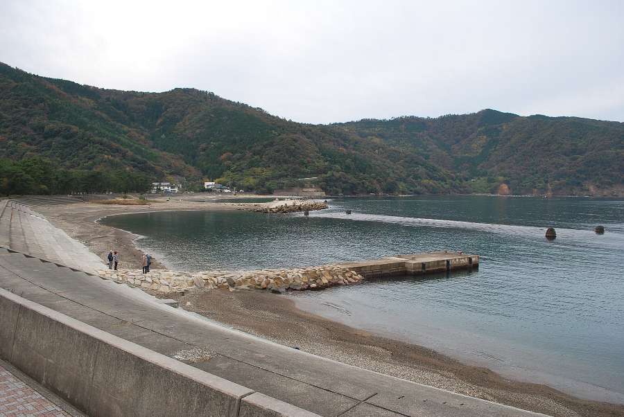 2015年11月13日9時現在は、曇で南の風が弱く吹いています。 食見海岸は、波がほとんど無く、とても穏やかです。 海水の透明度は高く、海底や底近くを泳いでいる魚が見えました。