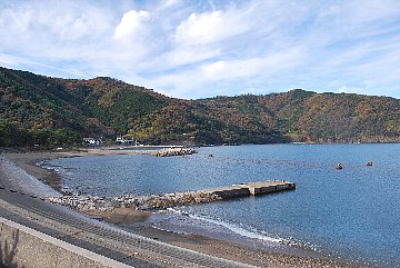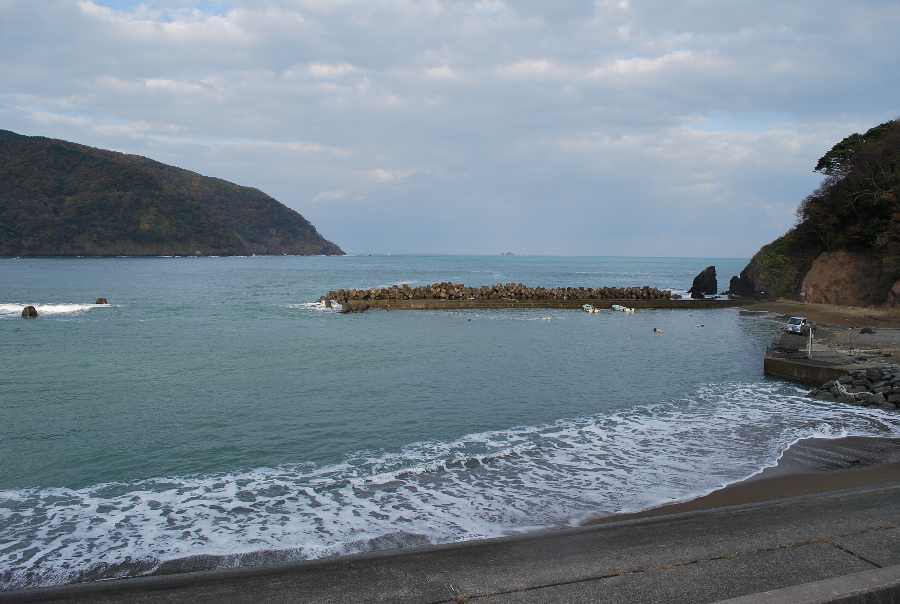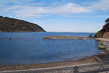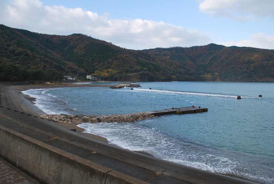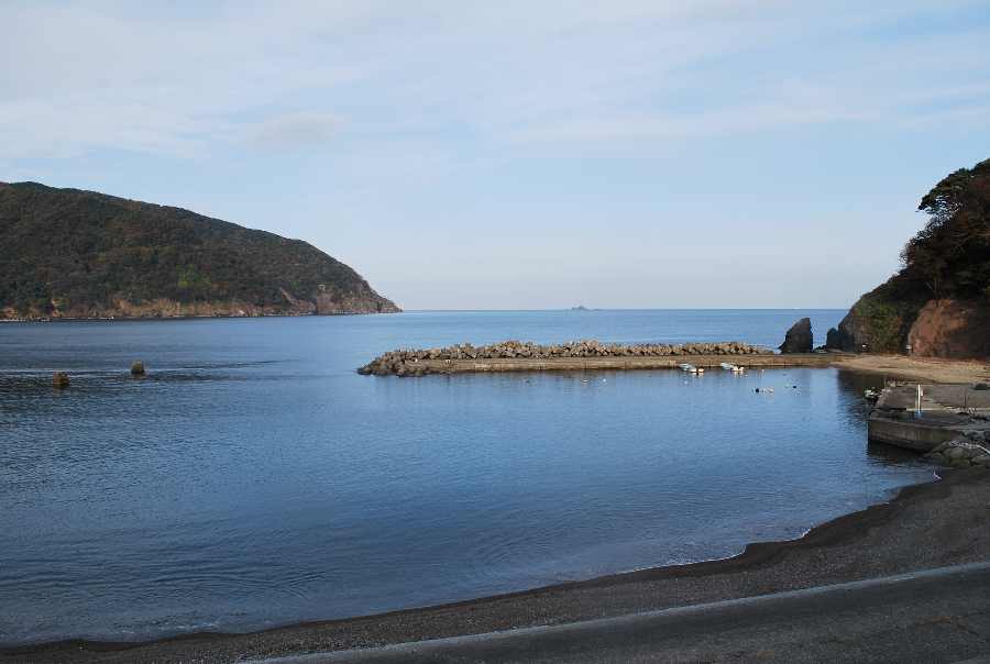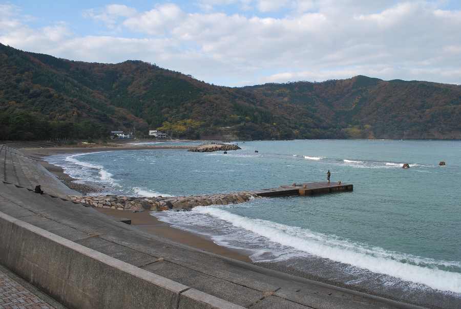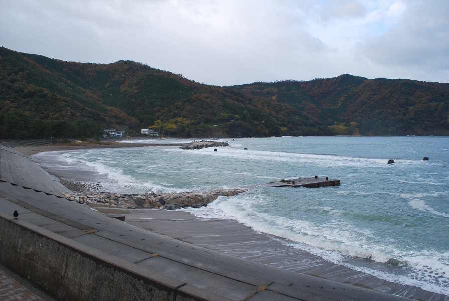 食見海岸は、風によるさざ波がありますが、大きな波はありません。