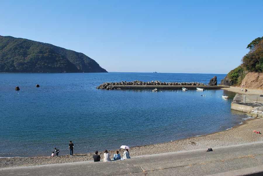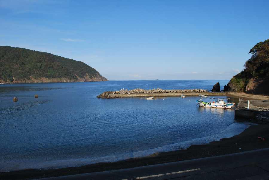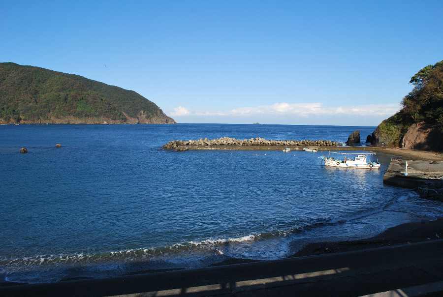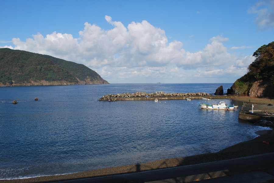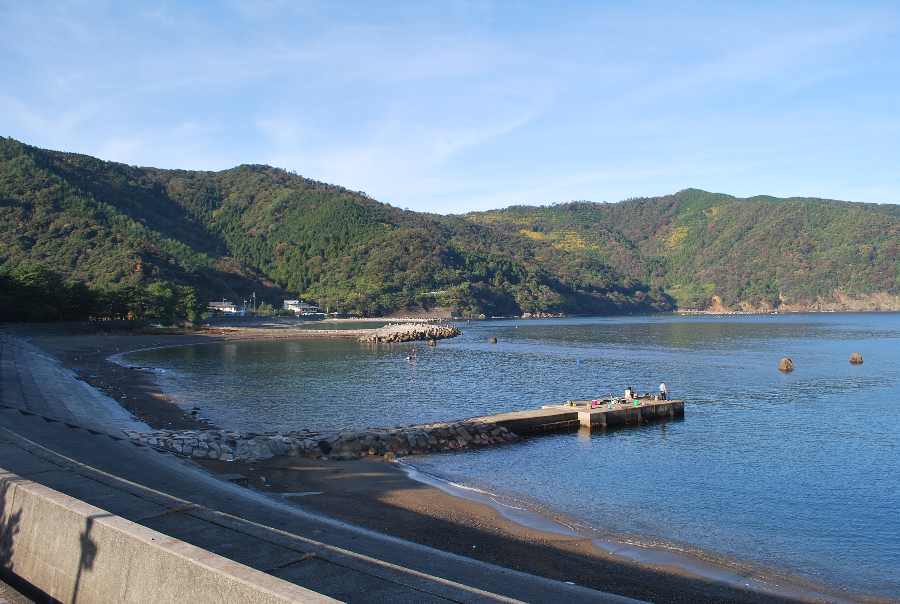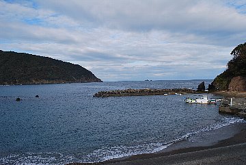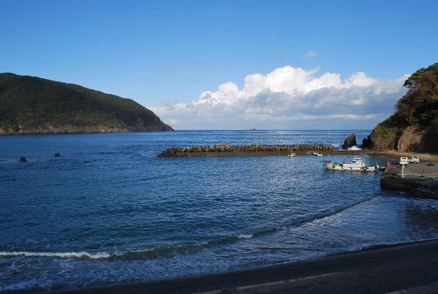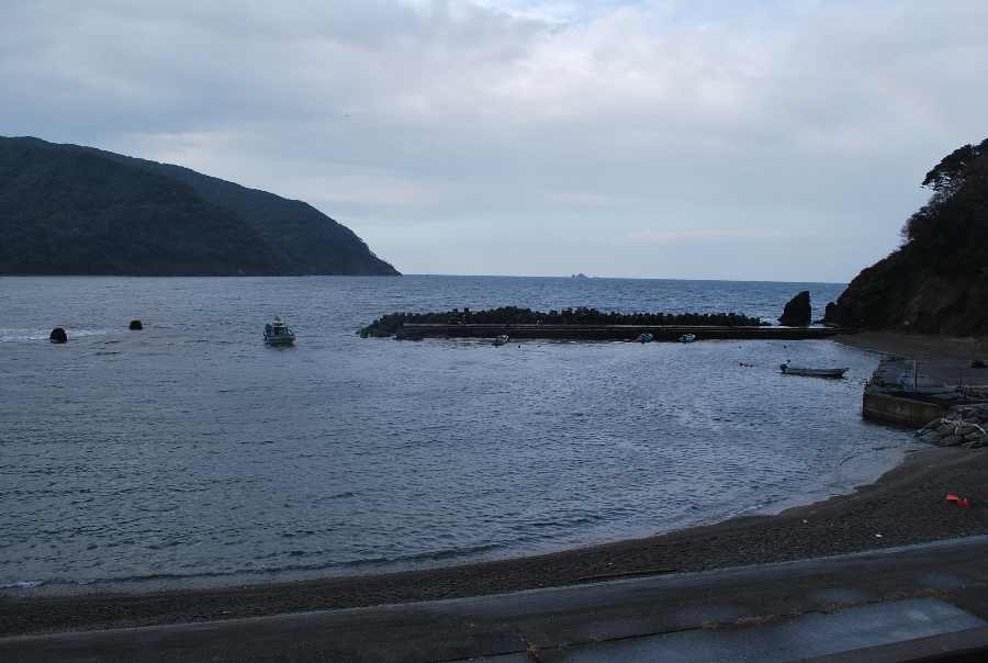 食見海岸は、約2mの波があり、防波堤に波がかぶります。