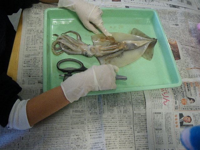 参加者から「イカを今までじっくり観察することはなかったが、オス・メスの見分け方や内臓のことを知ることができて楽しかった。」「イカの漁獲高が年々少なくなっていることが分かりました。」「漁業にも環境問題が直結(イカの漁獲の減少、漁のときのLEDの使用など)していることがよく分かりました。」といった感想がありました。