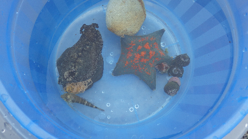 3日は小雨がぱらつき海面も普段より高めで波があり、中止にせざるを得ないかと悩みましたがなんとか開催することができ、種類匹の生きものが観察できました。