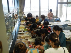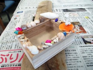 海岸には多くの漂着物がやってきます。貝殻や木など自然のものもあれば、ビーチグラスやプラスチックなど人工のものもあります。こうした漂着物をゴミとして扱うのではなく、工作の材料として活用することで、ゴミだらけの海岸が宝の山のようになります。今回の講座では、こうした漂着物について学び、漂着物を使って飾りや掲示物などを作り、海の環境について理解を深めてもらうことを目的に行いました。最初は何を作ろうか悩んでいた人も、手を動かし始めると集中し、すばらしい作品がいくつもできあがりました。また親子で参加されている方も、最初は子の作品作りを見守っていたおうちの方が興味をそそられて作り始め、お子様よりも熱中されている方も・・・。みなさんの創意工夫で夏休みの宿題だけでなく、仕事や遊びに使える作品もできました。