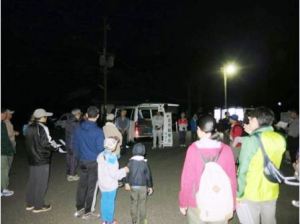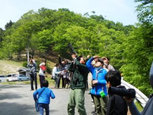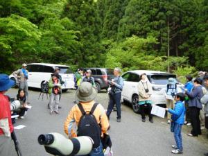 年4回開催のバードウォッチングの1回目は夏鳥の大合唱を聞くために、参加者の集合時間は何と朝4時!真っ暗な中でしたが、多くの方に来ていただきました。だんだん夜が明けてくると少しずつ鳥のさえずりが聞こえてきます。野鳥の会嶺南ブロックの方から解説を受け、サンコウチョウやクロツグミ、ヤマガラなど様々な種類の野鳥の大合唱を楽しみました。何度か場所を移動し、遠敷峠付近でついに幸せの青い鳥、オオルリの姿が!しばらく参加者の目の前に止まってくれました。最後に鳥合わせで32種類の野鳥を確認できました。