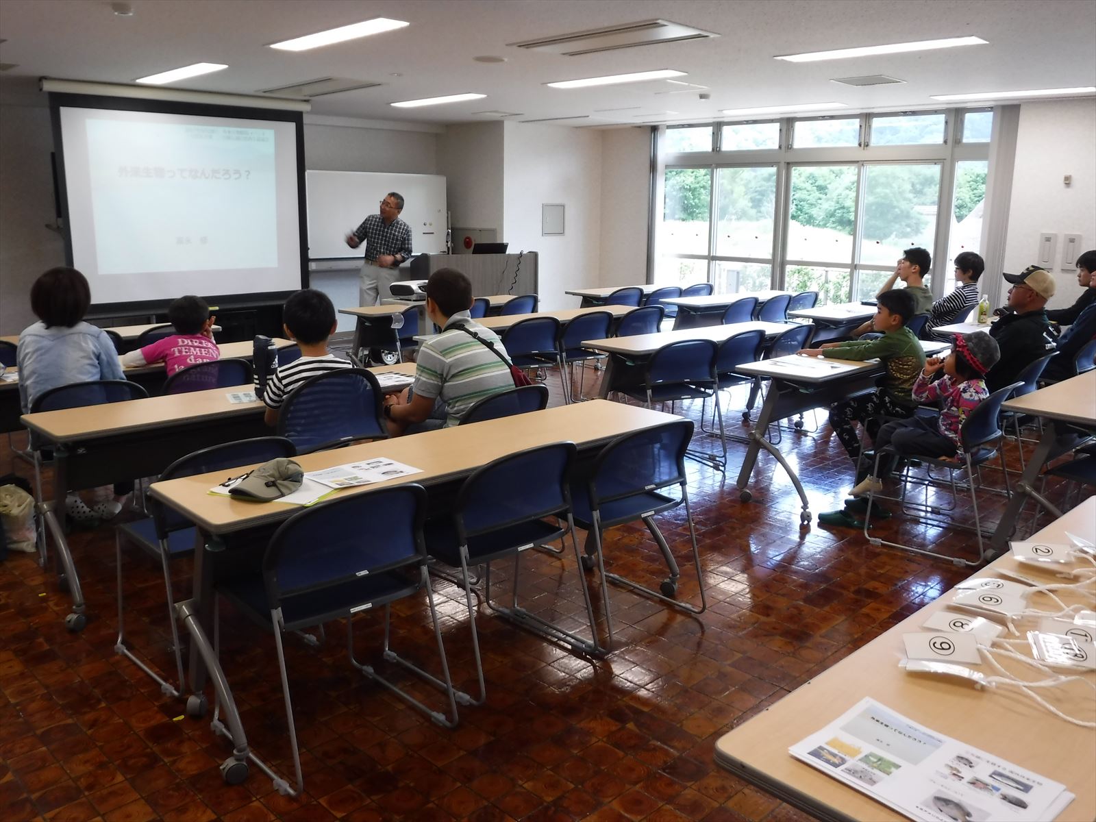 講師には、三方湖でオオクチバスやブルーギルなどの外来魚の生態や駆除方法について研究をされている、福井県立大学の富永先生にお越しいただき、外来生物や外来生物が与える影響について、分かりやすく教えていただきました。