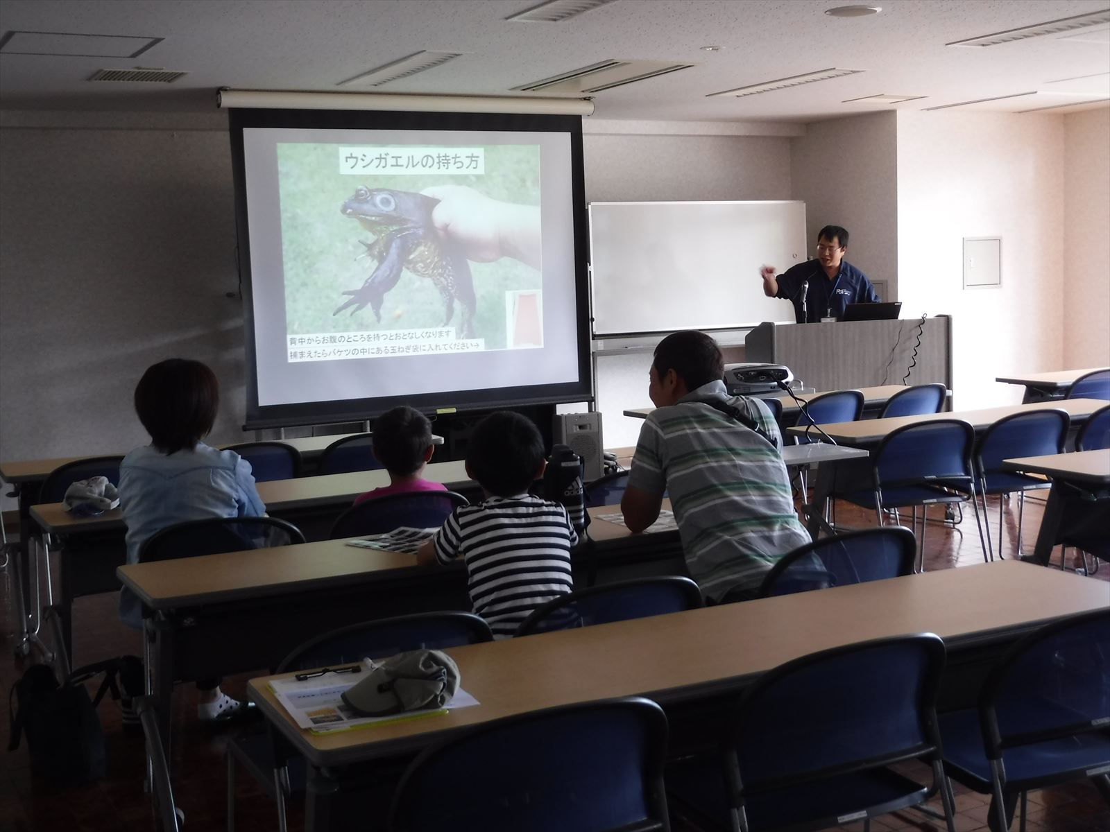 - ウシガエルの写真が出ると、どよめきが・・・。みんな大丈夫かな?