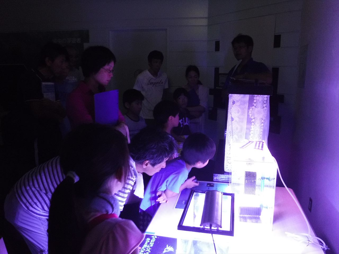 小さなミズクラゲ展では、きれいな光を浴びてゆらゆら泳ぐミズクラゲの体の作りをじっくり観察したり、専門家の方から海水浴の季節には気になる、クラゲの刺胞毒のお話を伺いました。