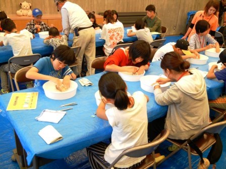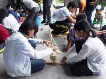 - 勾玉作り、熱心に石を削って仕上げました。