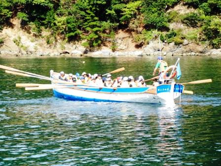 - カッター漕艇で食見海岸へ向けて出発しました。